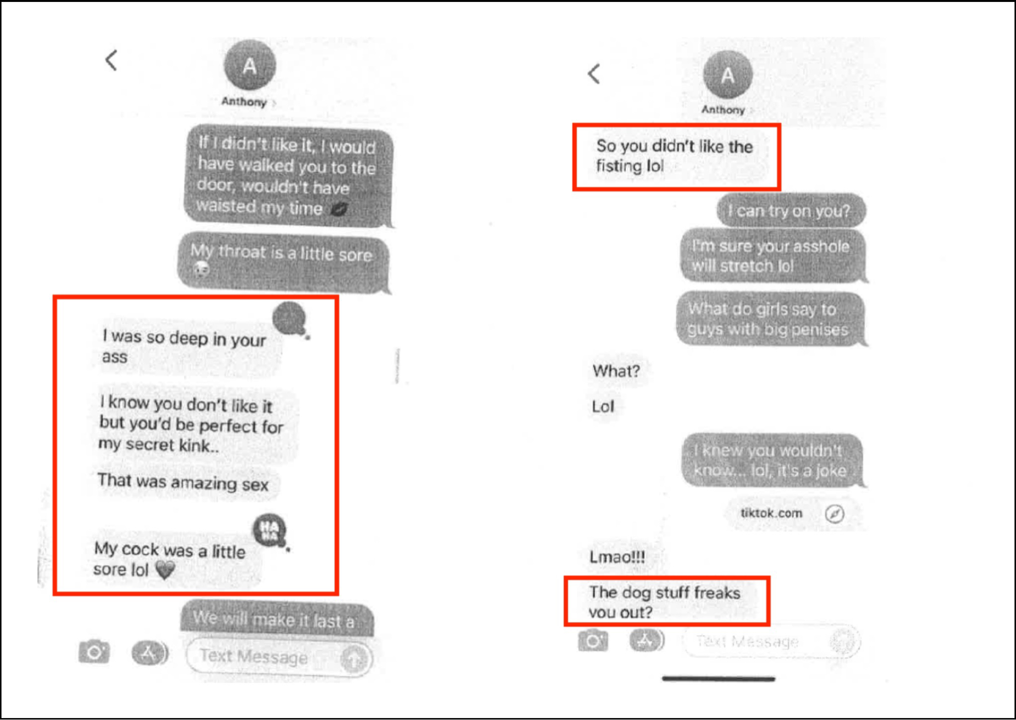 “I was so deep in your ass…I know you don’t like it but you’d be perfect for my secret kink…that was amazing sex…. My cock was a little sore lol ❤️…. So you don’t like the fisting lol…”