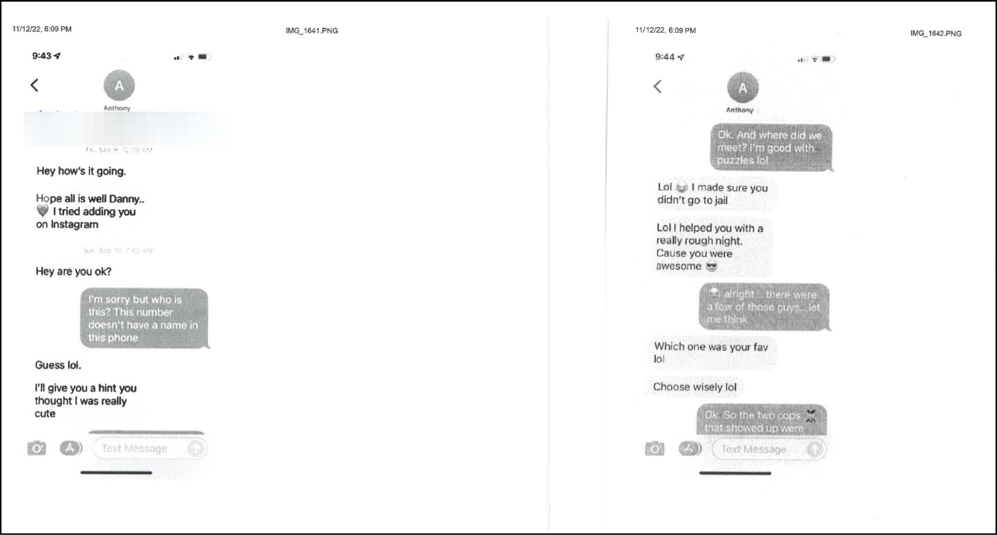 On Sept 9, 2022, within day of her release from the psychiatric hold, officer Espadas began texting her — initially hiding who he was by using his middle name “Anthony.” Espadas noted that he kept her out of jail: